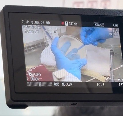 Imagem da inoculação da cultura na placa de Petri (clique aqui para visualizar)